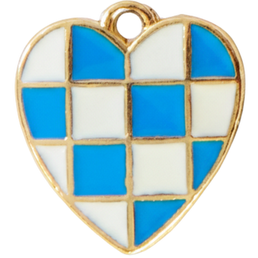 Blue Grid Heart Charm