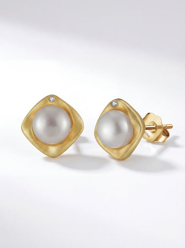Elegantly refined and subtly radiant, the Golden Embrace Stud Earrings are an ode to coastal serenity. Designed with a cushion-shaped brushed gold bezel and crowned with a luminous cultured freshwater pearl, these timeless earrings reflect the quiet luxury of Key West. A delicate accent of AAAA cubic zirconia adds just the right touch of sparkle.