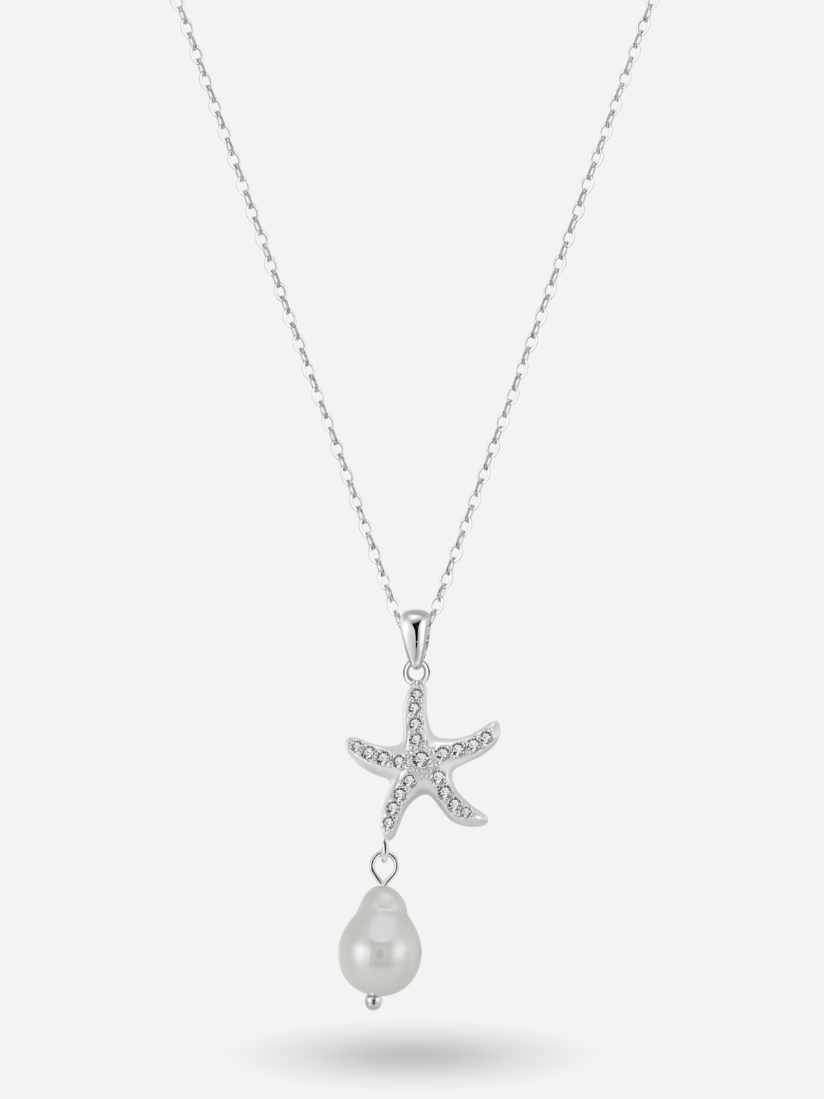 Starfish pearl necklaces displayed in silver. Starfish pearl necklaces displayed in silver.