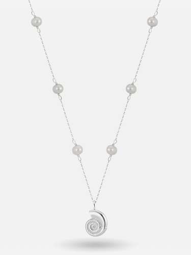 Silver Nautilus Pearl Pendant Necklace – Caribbean Vibes