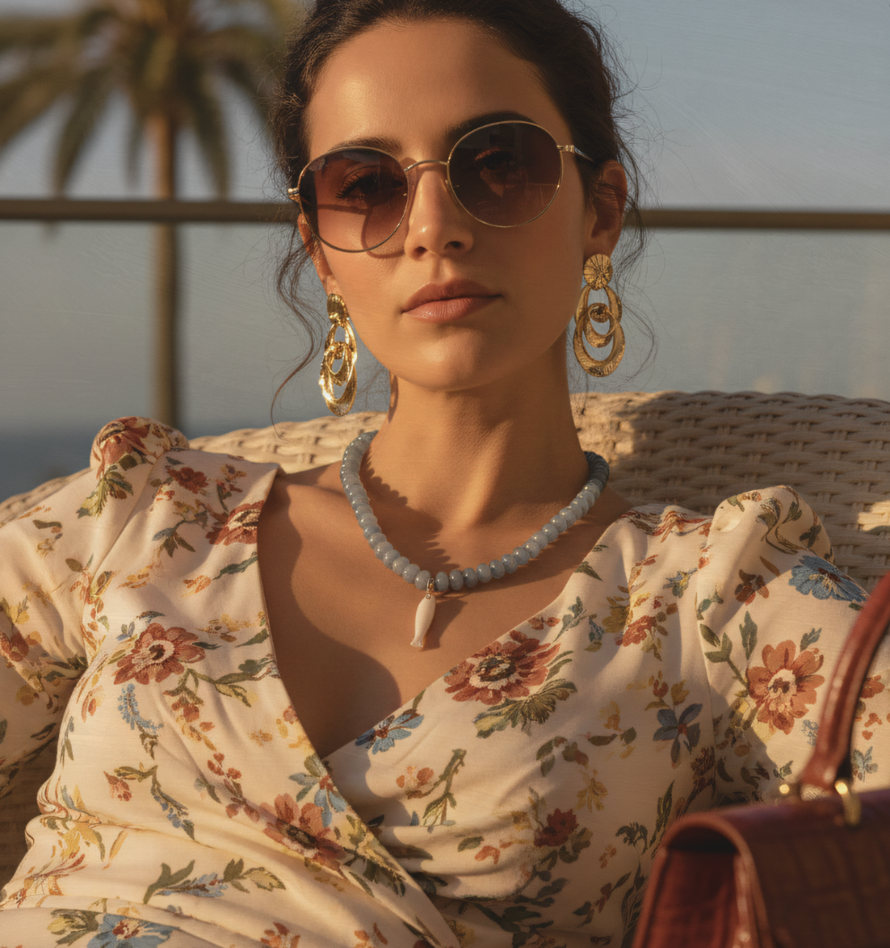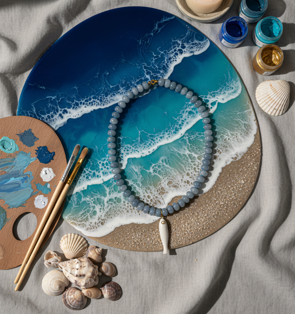 Pair this calming blue necklace with flowy dresses or crisp white shirts for an effortlessly coastal look. Perfect for sunset dinners, seaside escapes, and everything in between.