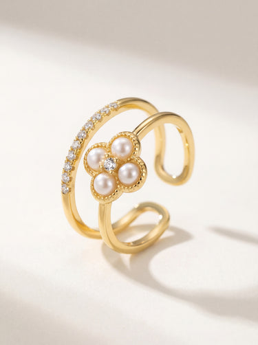 Golden Bloom Double Layer Adjustable Pearl Ring – PRASINOUS